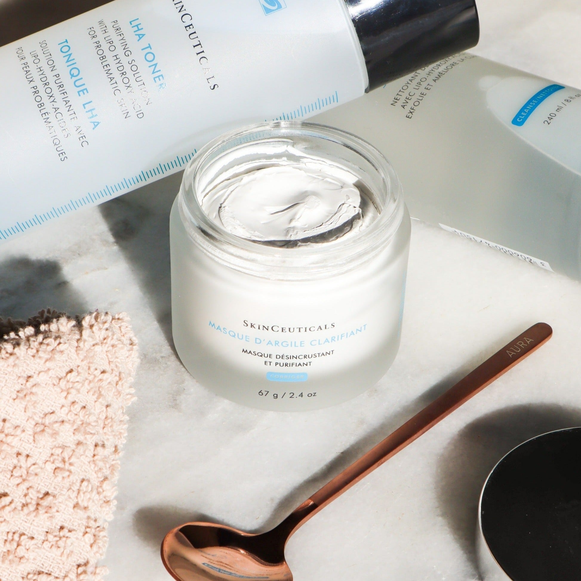 clays; botanicals and minerals to help calm the skin; and a hydroxy acid blend